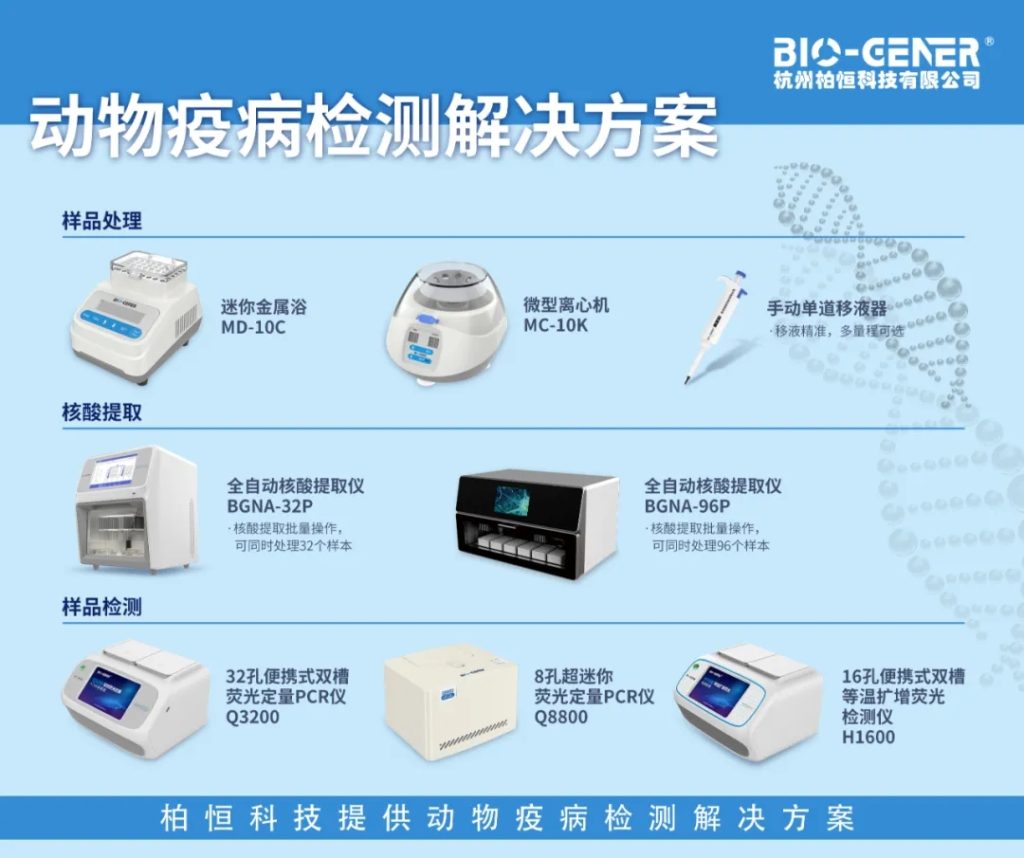 此外柏恒還提供動物疫病檢測解決方案,我們提供包括離心機、金屬浴、PCR儀等全流程實驗儀器,更多內容,歡迎咨詢聯系。