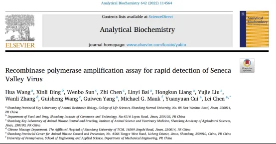 山東師范大學生命科學學院碩士研究生導師陳蕾教授課題組在《Analytical Biochemistry》發表了題為Recombinase polymerase amplification assay for rapid detection of Seneca Valley Virus 的研究論文,探討研究了重組酶聚合酶擴增(RPA)快速檢測SVV的方法。