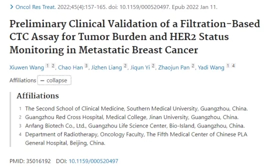 南方醫科大學臨床醫學博士生導師、主任醫師王雅棣課題組在醫學期刊《Oncology Research and Treatment》上發表題為Preliminary Clinical Validation of a Filtration-Based CTC Assay for Tumor Burden and HER2 Status Monitoring in Metastatic Breast Cancer的文章,探索研究基于過濾的CTC測定轉移性乳腺癌腫瘤負荷和HER2狀態監測的初步臨床驗證情況。
